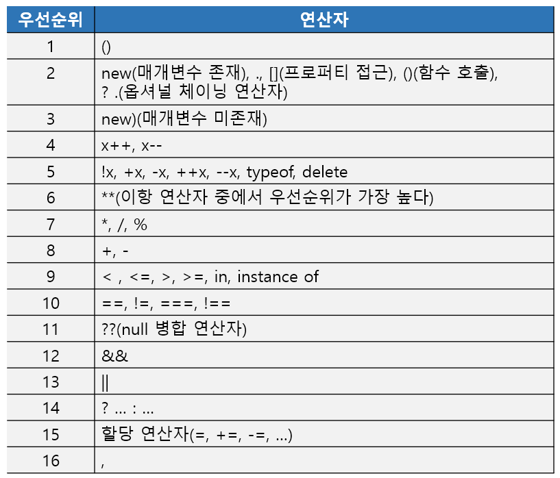 지수 연산자는 이항 연산자 중에서 우선순위가 가장 높다.