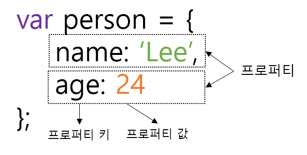 객체 리터럴은 중괄호({...}) 내에 0개 이상의 프로퍼티를 정의한다. 변수에 할당되는 시점에 자바스크립트 엔진은 객체 리터럴을 해석해 객체를 생성한다.