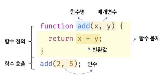 - 함수 몸체는 함수 호출에 의해 실행된다.