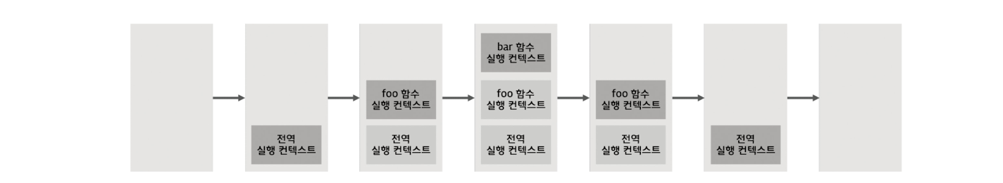 현재 전역 코드 평가를 통해 전역 실행 컨텍스트가 생성되었고 전역 코드를 실행하고 있다. foo 함수가 호출되면 전역 코드의 실행을 일시 중단하고 foo 함수 내부로 코드의 제어권이 이동한다.