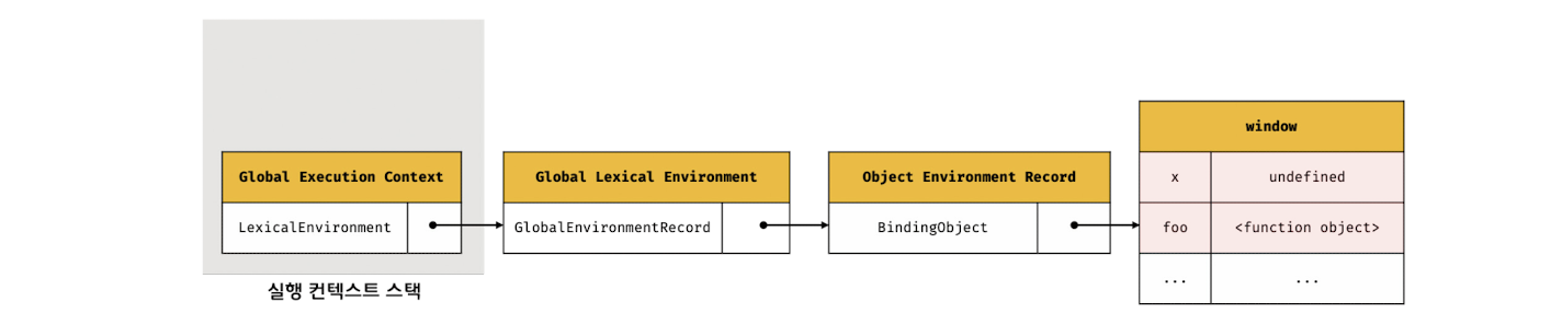 foo 함수는 전역 코드에 정의한 전역 함수기 때문에 외부 렉시컬 환경에 대한 참조에는 전역 렉시컬 환경의 참조가 할당된다.