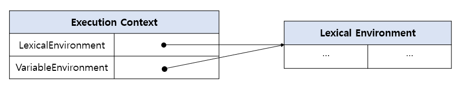 실행 컨텍스트는 `LexicalEnvironment`와 `VariableEnvironment` 컴포넌트로 구성된다.