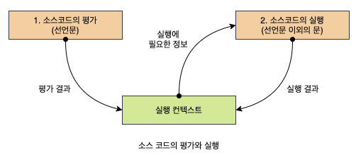 모든 소스코드는 실행에 앞서 평가 과정을 거치며 코드를 실행하기 위한 준비를 한다.