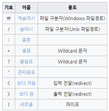 윈도우에서 파일명으로 쓸 수 없는 문자는 다음과 같다.